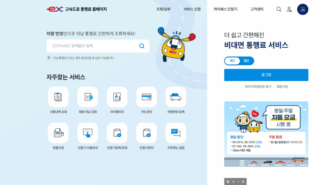 고속도로 이용 시 발생하는 통행료를 손쉽게 확인하고, 미납 내역이 있을 경우 온라인으로 즉시 납부할 수 있도록 지원합니다 특히 하이패스 이용자에게는 실시간 사용 내역 확인과 전자영수증 발급 기능이 제공되어, 통행료 관리가 훨씬 편리해집니다.