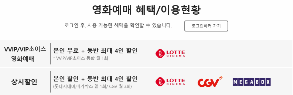 • 할인 횟수 제한: 월 4~6회 내외 (등급별 상이)