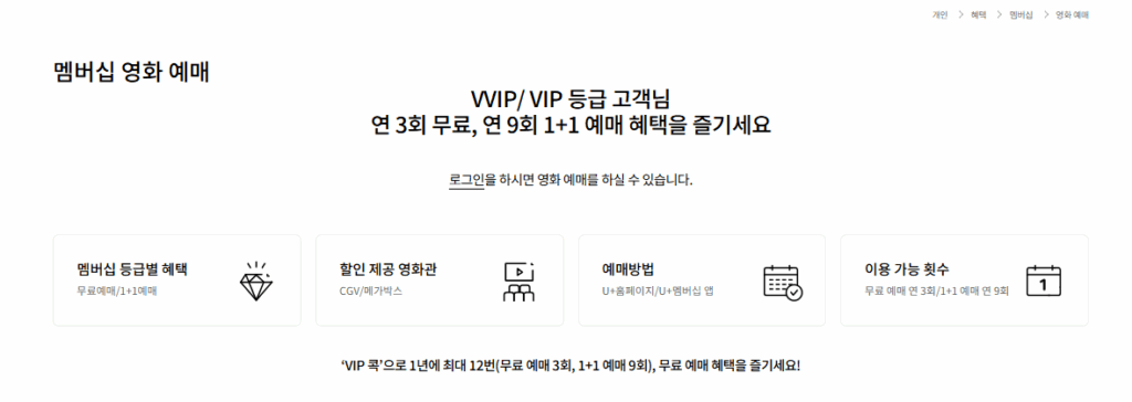• 할인 적용 방식: U+멤버십 앱에서 쿠폰 발급 후 CGV 예매 시 사용