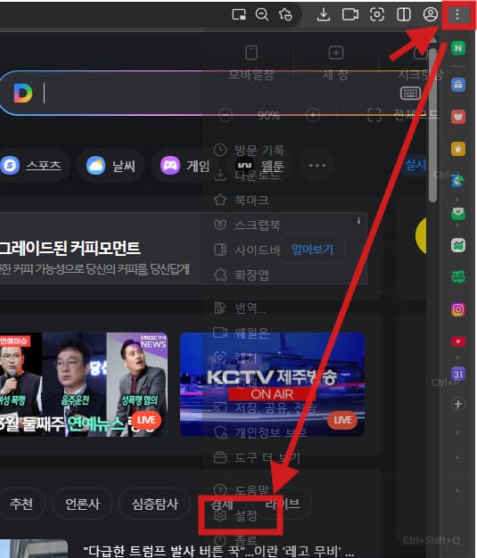 웨일 브라우저에서 다음을 시작페이지로 설정하는 방법입니다.