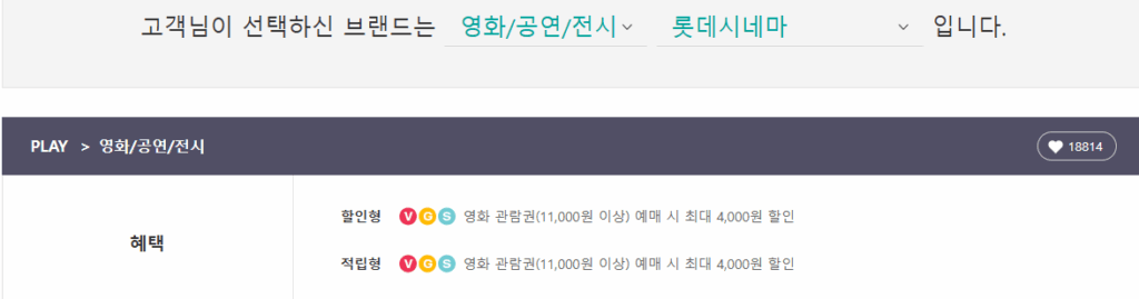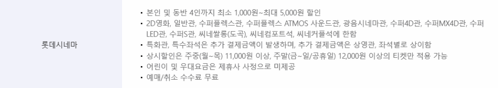 - 할인 조건: 일반 2D 영화 예매 시 적용
